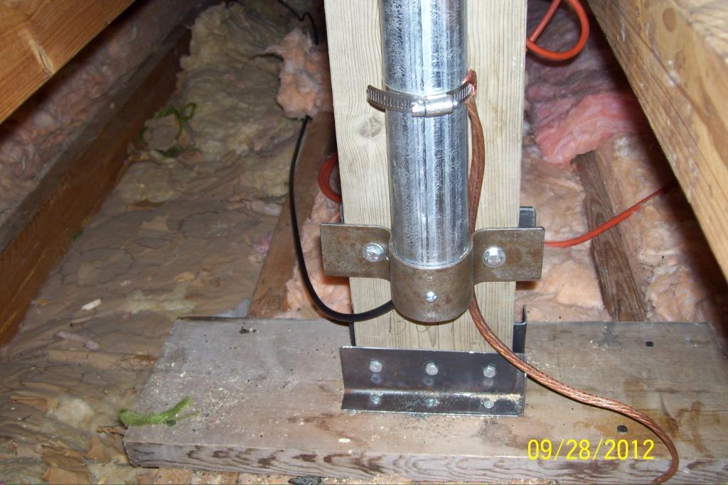 Exterior antennas must have their mounting rod grounded to provide electric discharge in the event of a lightning strike or static accumulation from other causes.